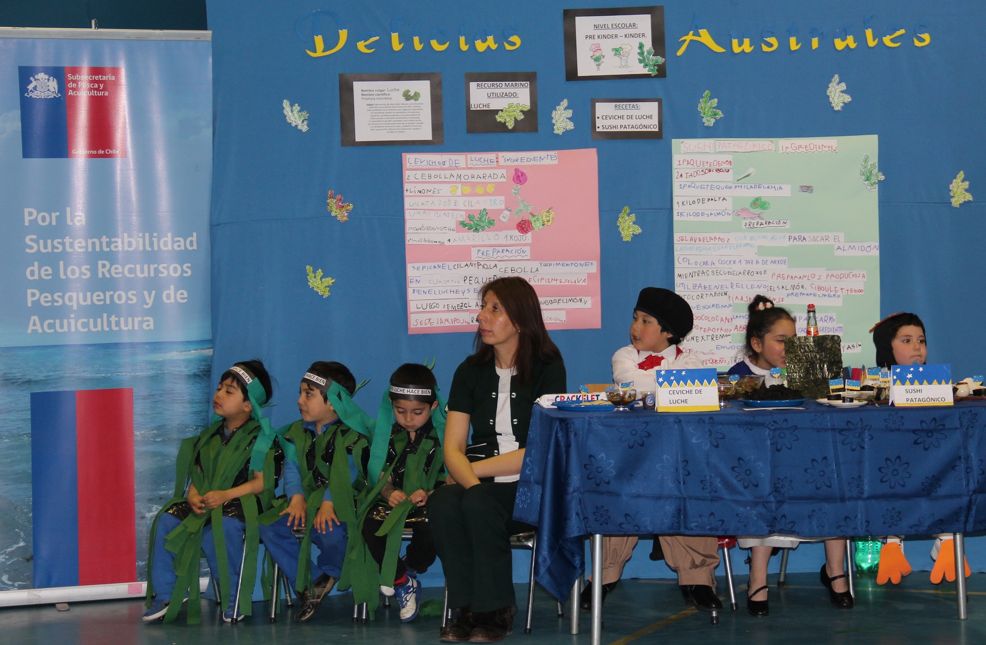 Toda la comunidad educativa se desplegó entorno a esta actividad, que se enmarca dentro de la Línea de Aumento de Consumo de Productos del Mar, del Programa Transferencia Técnica y Capacitación para el Desarrollo Sustentable del Sector Pesca Artesanal, Magallanes y Antártica Chilena, cuyos fondos provienen del Gobierno Regional.